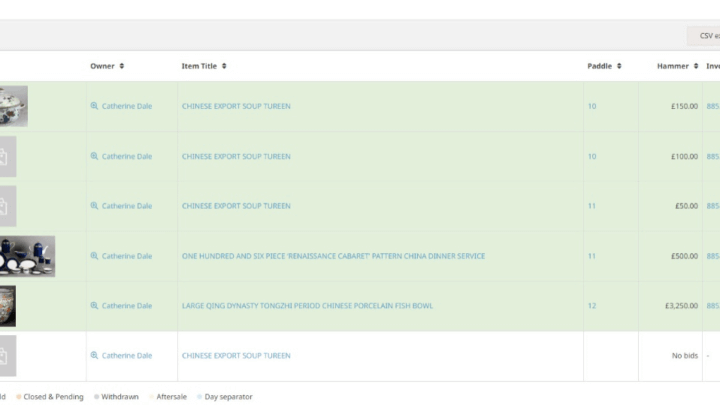 Once you have your consignments for auction, it’s advisable to have a comprehensive stock management system to keep track of all the items coming through your door; you’ll need to know which client they belonged to as a vendor before the auction and which bidder client they now belong to after the auction.